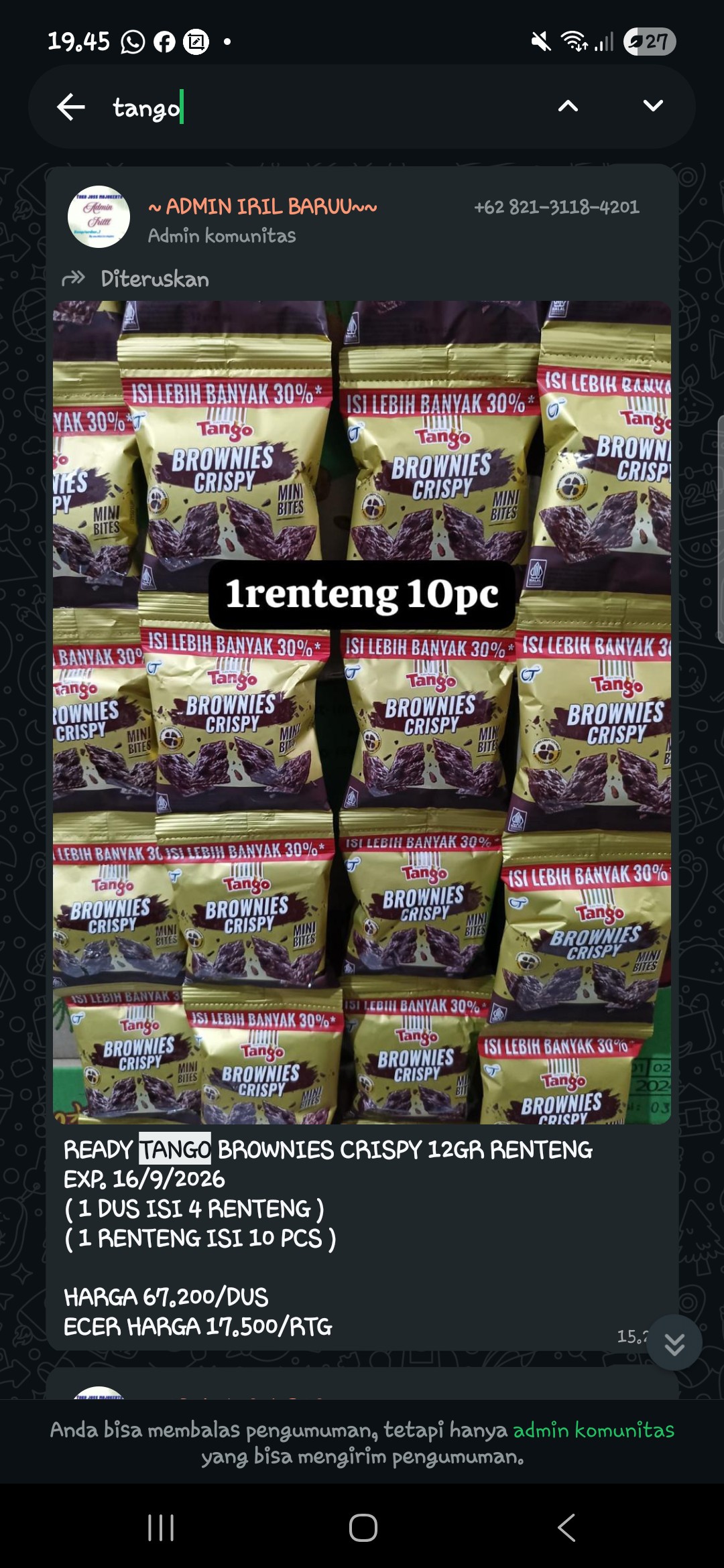 TANGO BROWNIES RENTENG