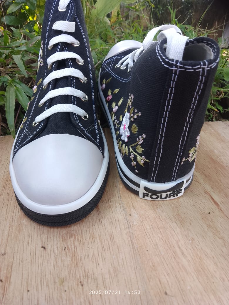 Sepatu Bordir Bunga High Top Kanvas – Sneakers Handmade Wanita Trendy