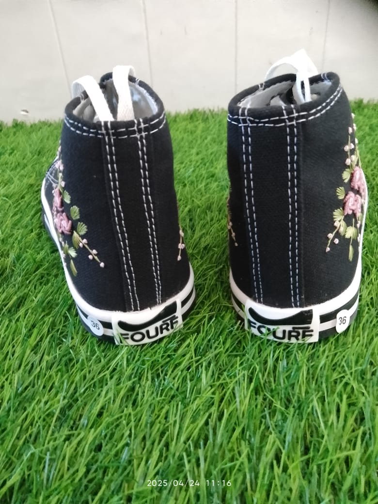 Fourf - Sepatu Olahraga Outdoor Wanita Sulam Hitam Sol Karet Terbaru Size 36
