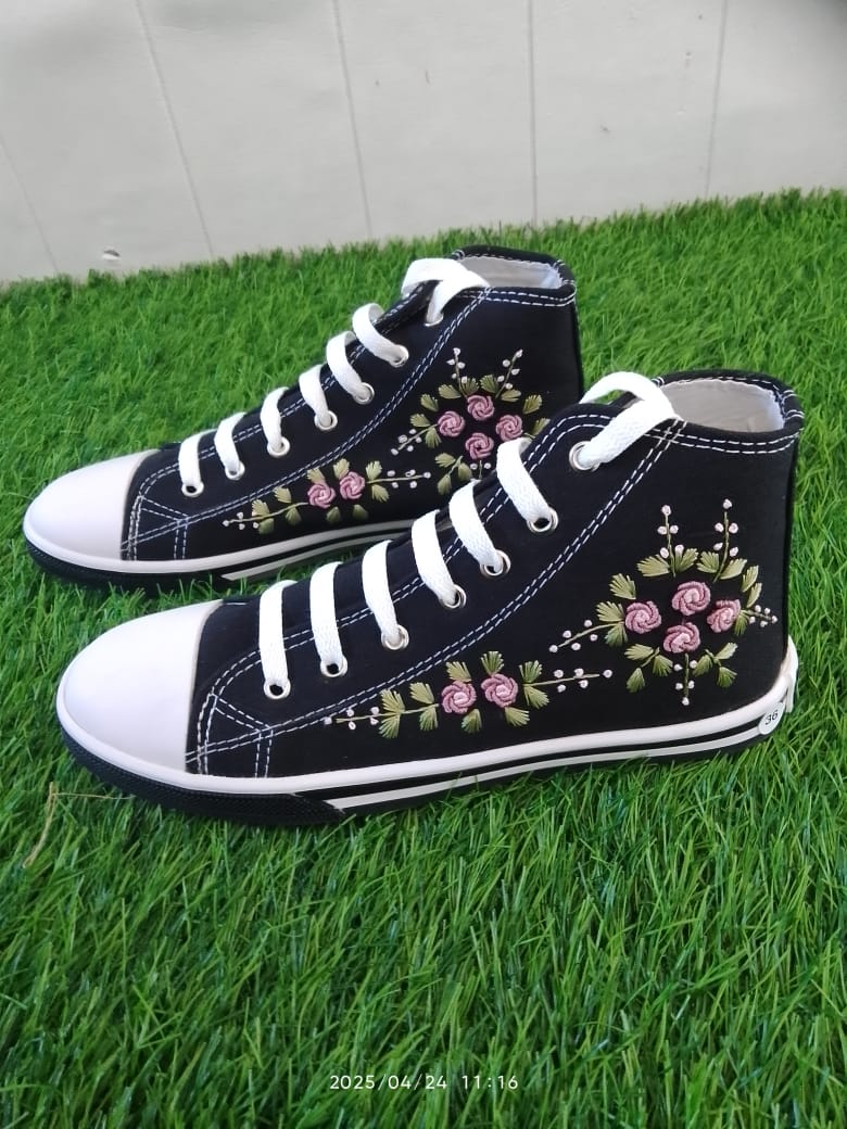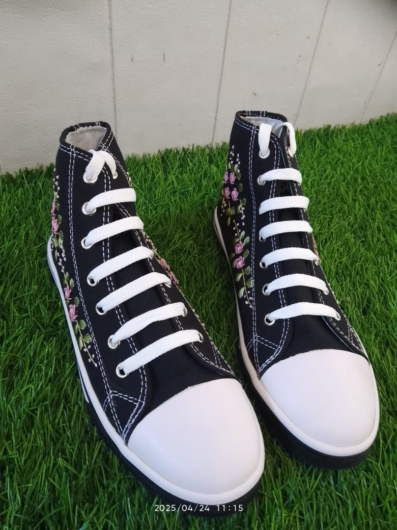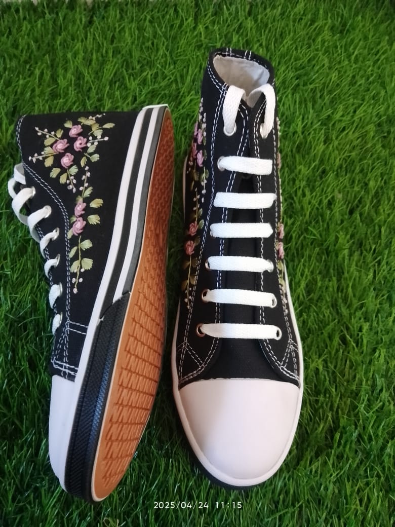 Bahan upper (bagian atas terbuat dari bahan kanvas premium yang telah kita sulam menggunakan tangan)