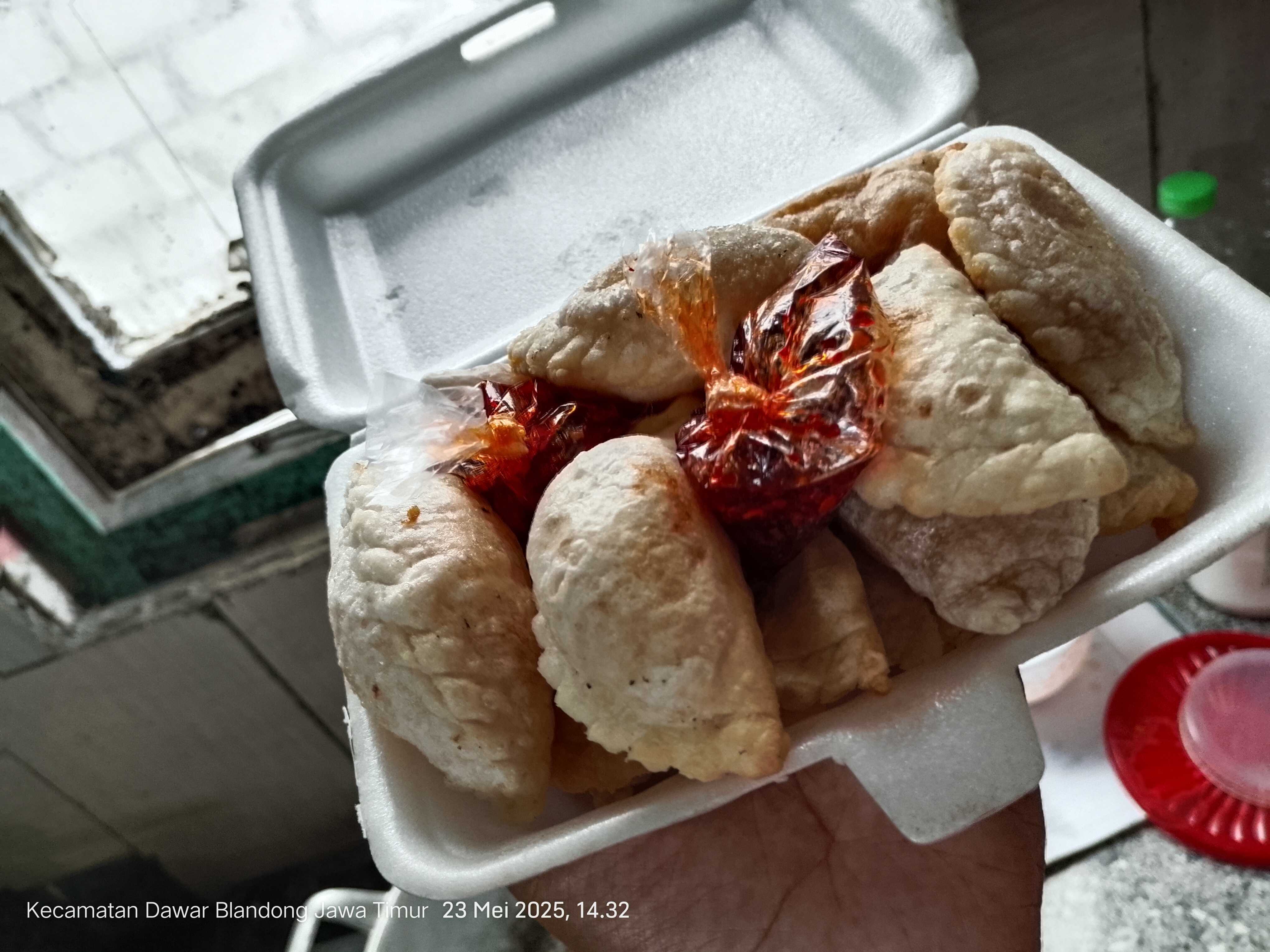 Cireng Isi ayam disajikan dengan Bumbu Chili Oil