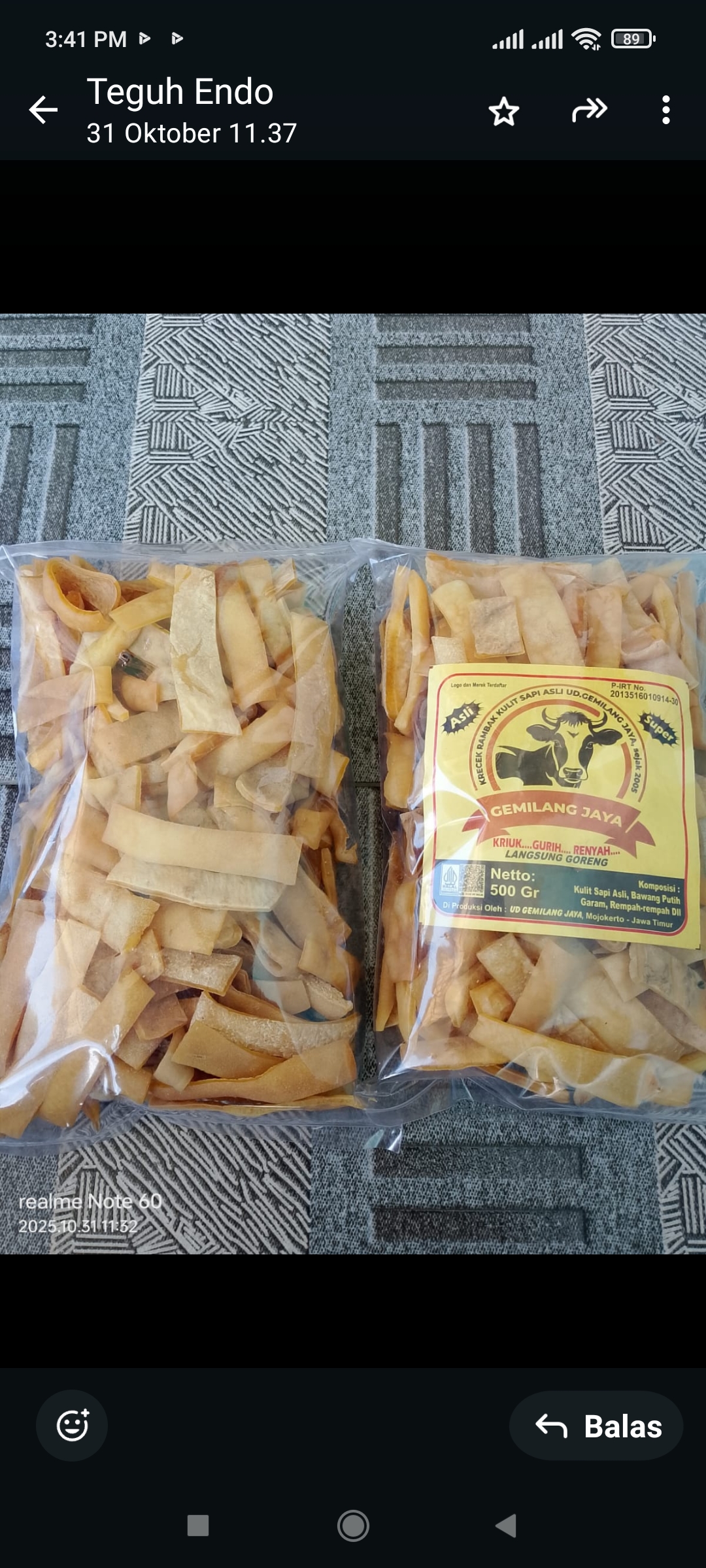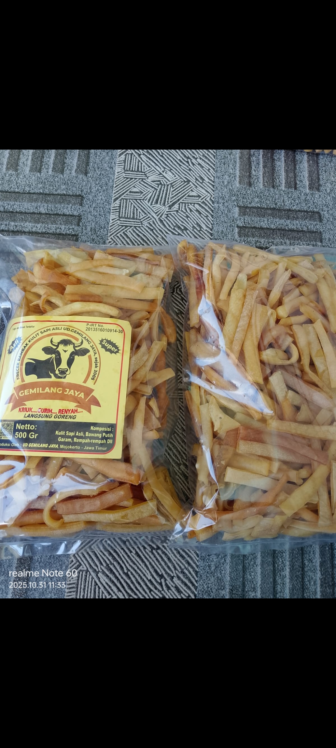Dibuat dari bahan kulit sapi pilihan kemudian dimarinasi dengan rempah2 sehingga menghasilkan cita rasa yg khas