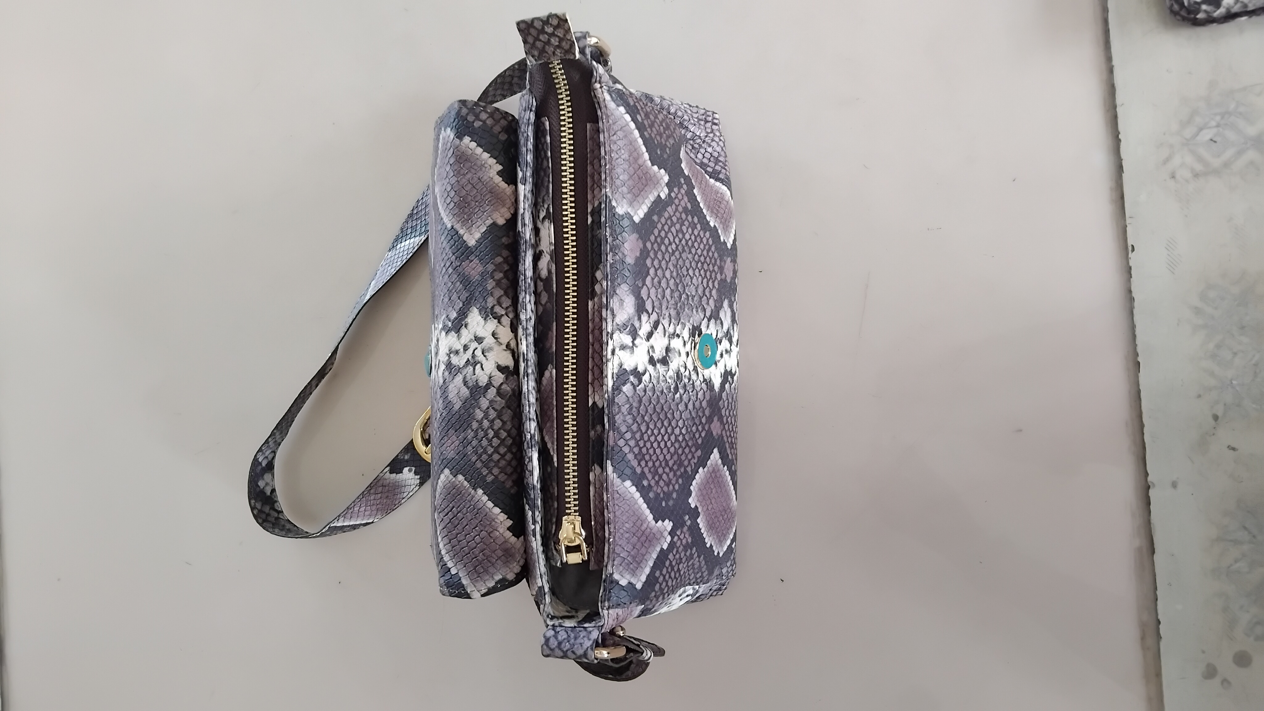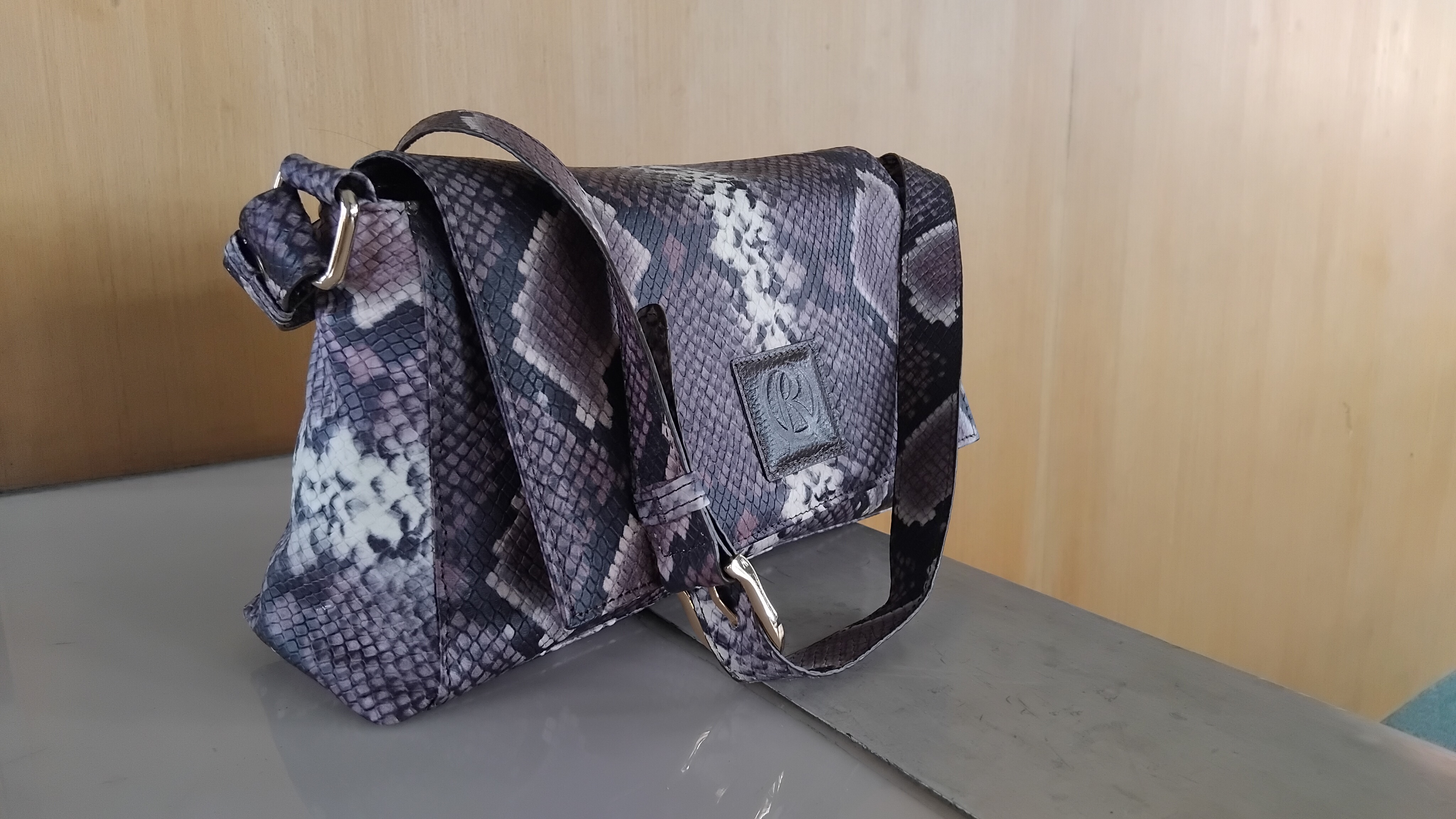 Tas selempang wanita terbuat dari kulit sapi yang diproses menjadi motif kulit ular