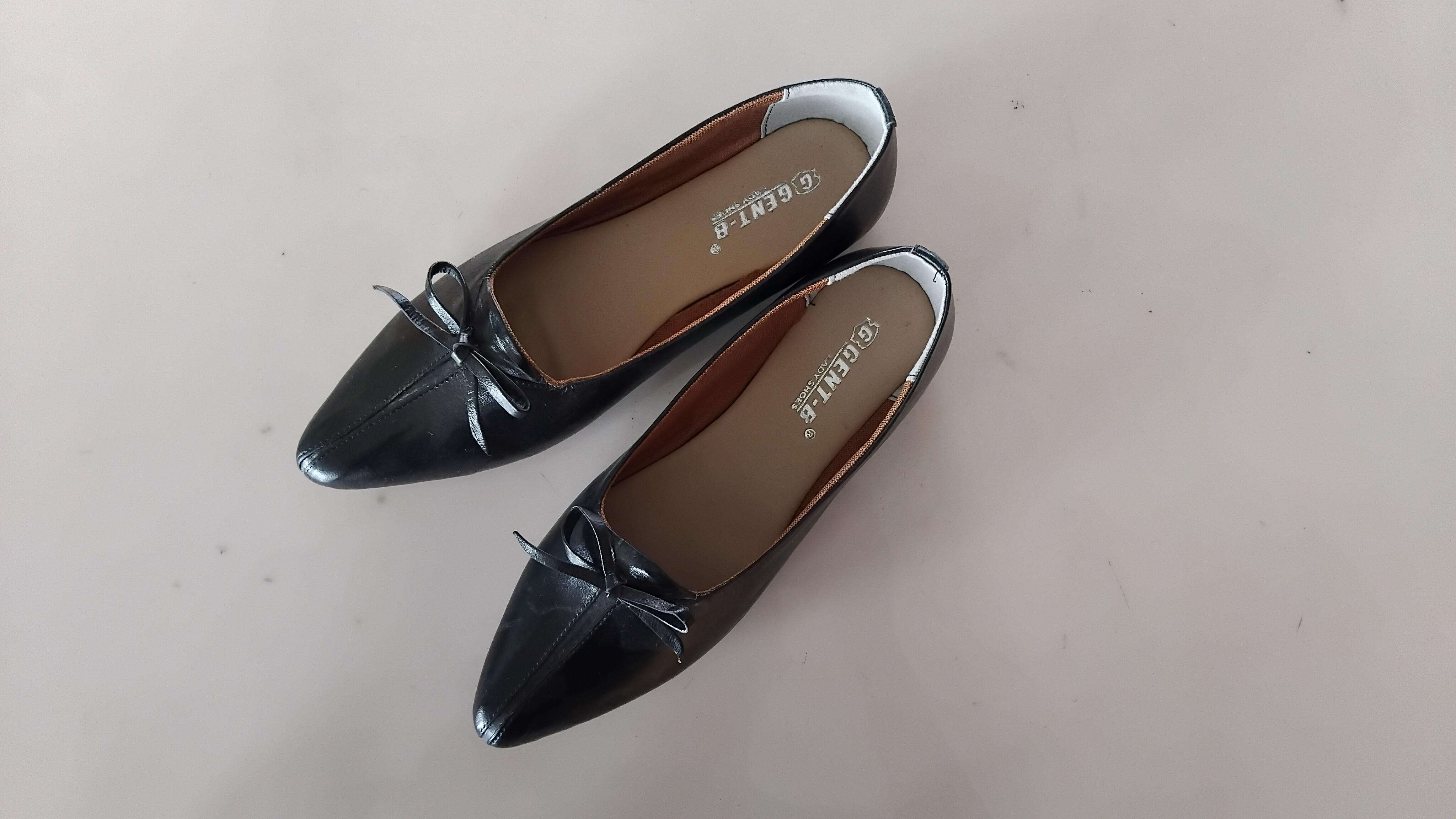 Sepatu wanita terbuat dari kulit, model flat warna hitam. Tersedia ukuran 37 & 39