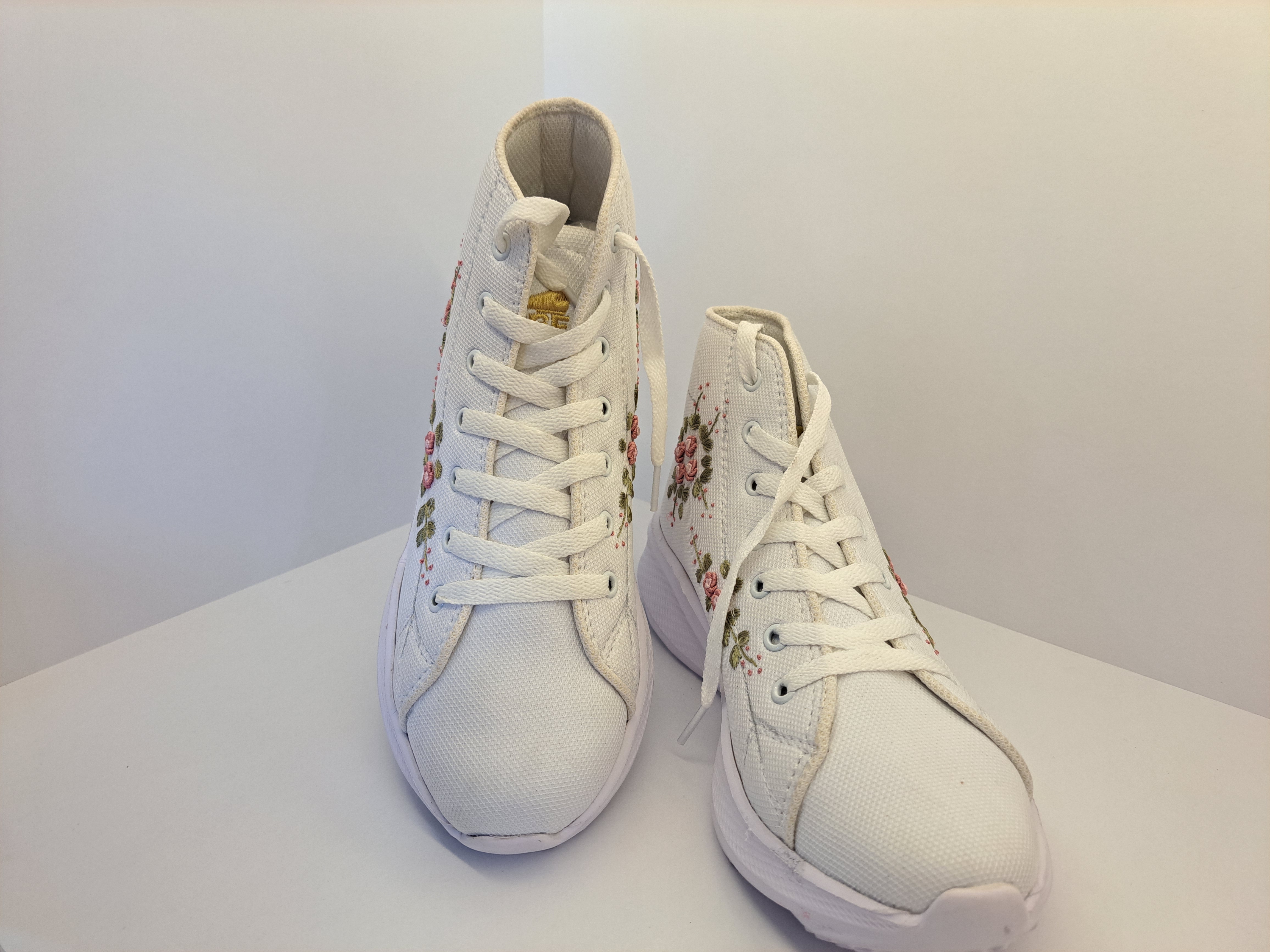 Sepatu fashion cewek yang disulam motif bunga di pinggiran